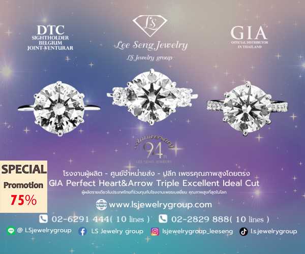 ห้างเพชรหลีเสง (L.S. Jewelry Group) โรงงานผู้ผลิต - ศูนย์จำหน่ายส่ง - ปลีก - ส่งออก เพชรแท้ธรรมชาติ (Natural Diamond) คุณภาพสูงสุด (Perfect Heart&Arrow Ideal Cut)ซึ่งเปิดมานานกว่า 94 ปี